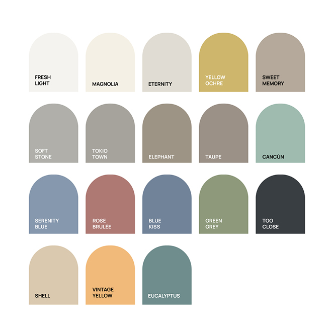 - 18 colores suaves y elegantes para una decoración de alta tendencia.